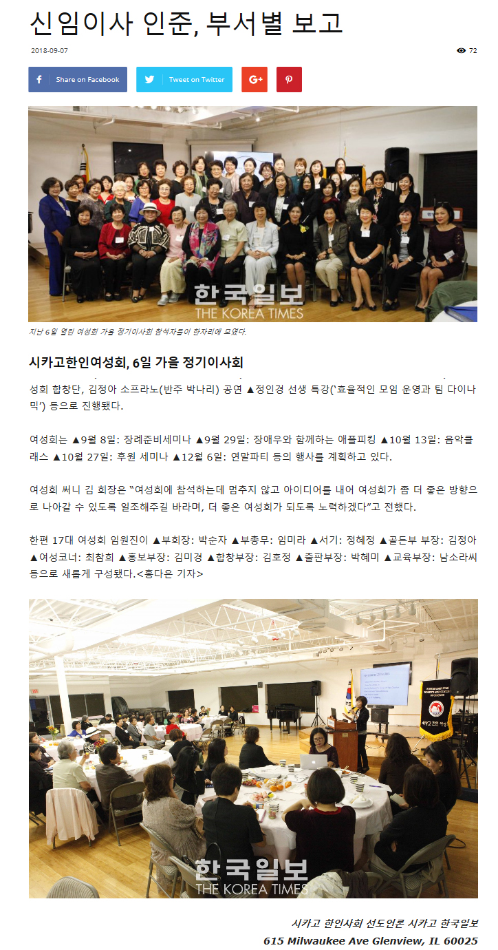 시카고한인여성회 가을 정기 이사회