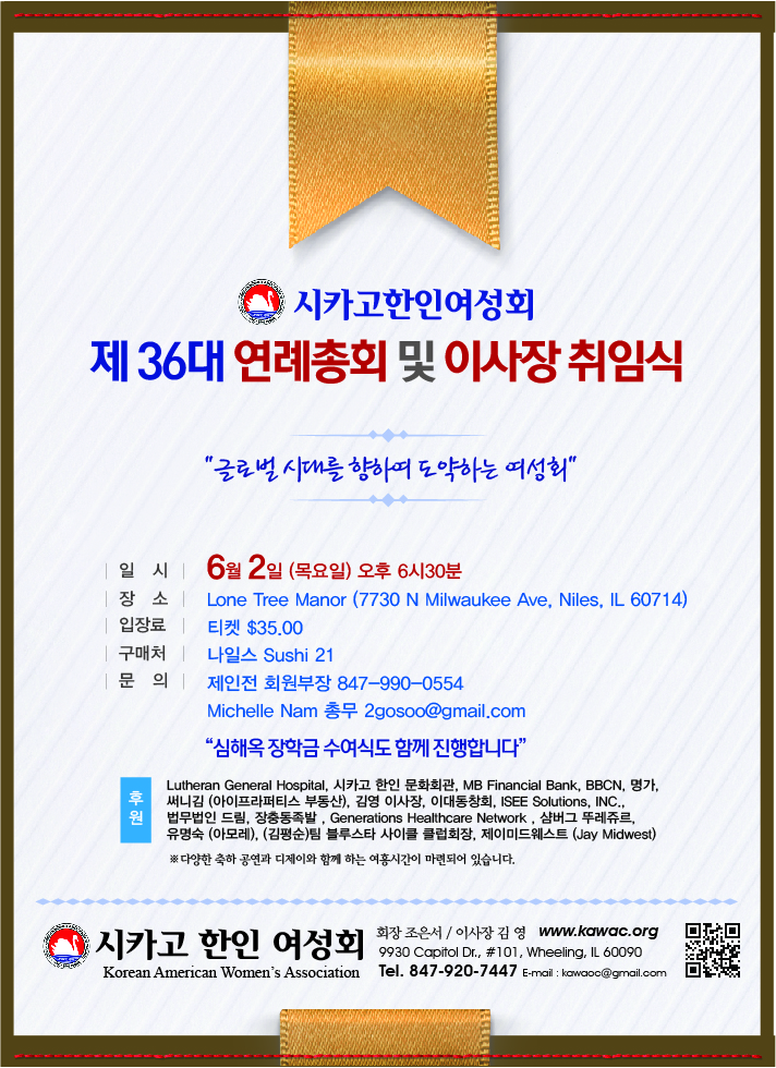 “글로벌 시대를 향하여 도약하는 여성회”의 연례총회가 아래와 같이 있습니다.